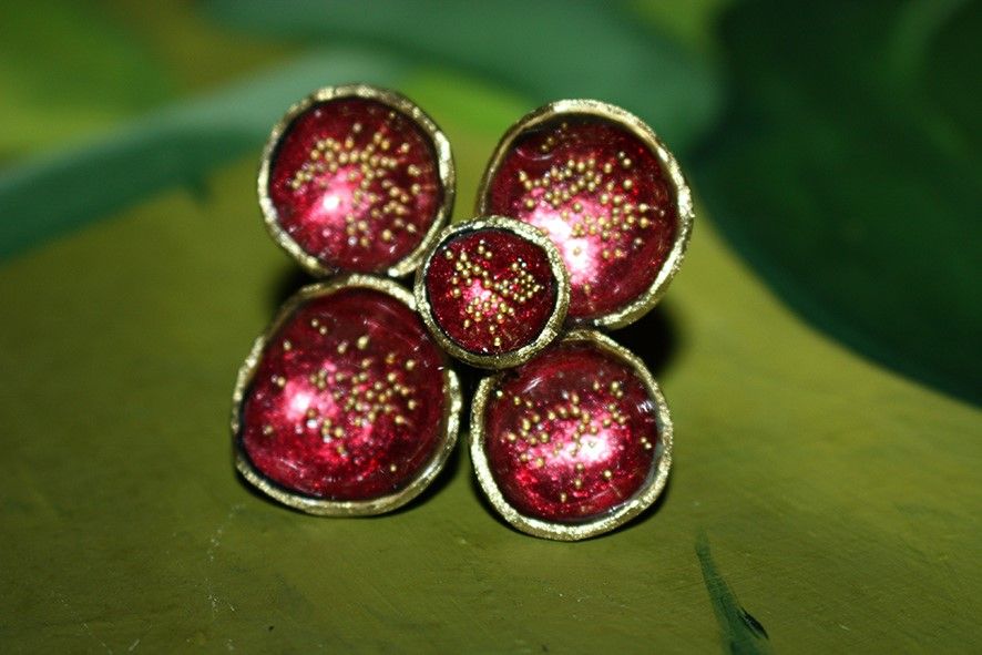Después de trabajar y estudiar metales como el cobre, el bronce y el latón, mezclados con plata, Paola introduce en su trabajo las pátinas, las resinas e incluso materiales provenientes de la propia naturaleza, como bellotas, semillas, pistachos, huevos, entre otros.