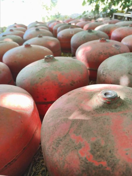 La fabricación de los instrumentos TAMdrum es un proceso único y sostenible que comienza con el reciclaje de antiguas bombonas de gas en desuso. Estas bombonas se recolectan y se someten a un proceso de limpieza y desmontaje. El primer paso consiste en vaciar completamente las bombonas y eliminar cualquier residuo de gas, asegurando un entorno de trabajo seguro.