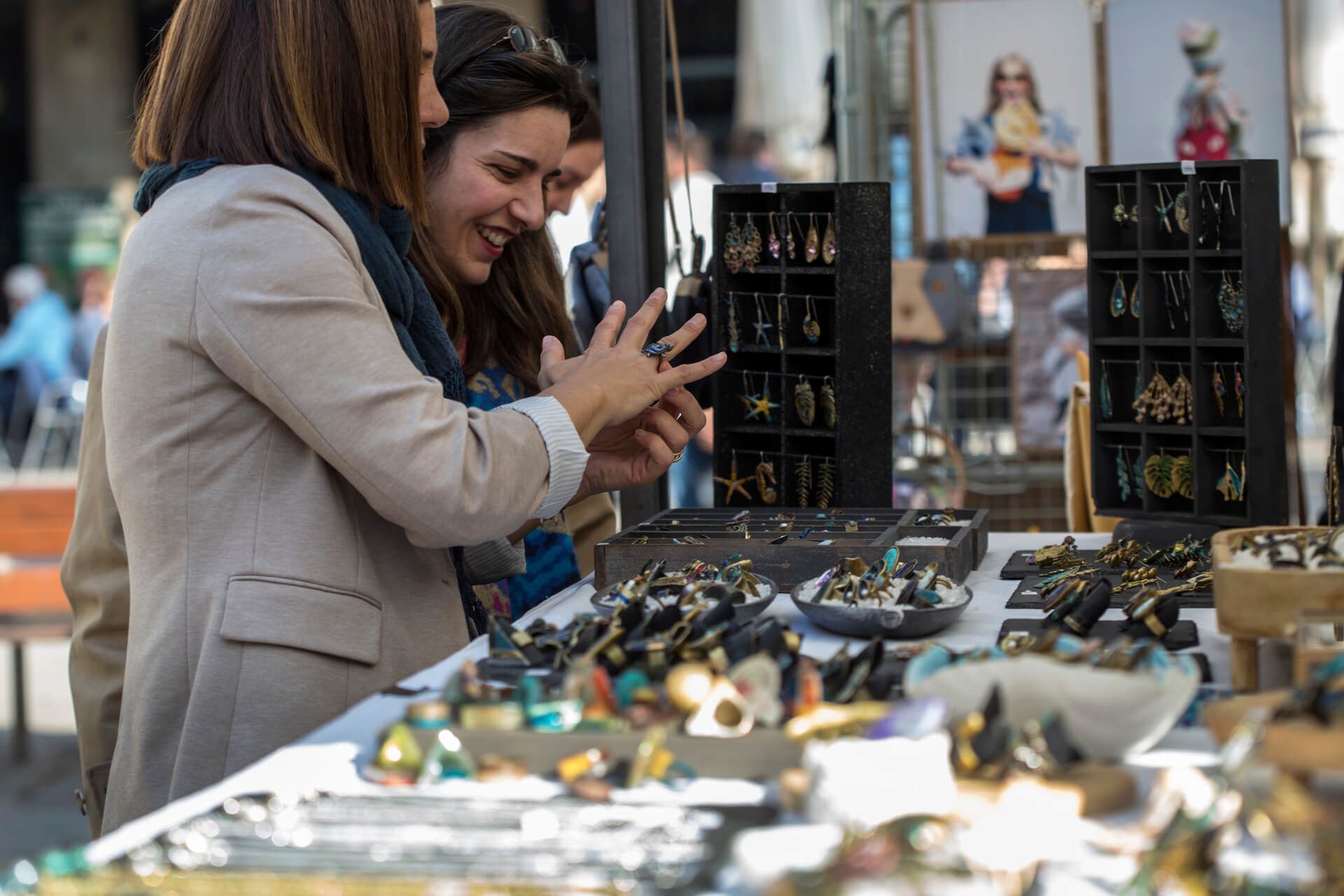 Què hi puc trobar: Joieria, bijuteria, objectes decoratius i de disseny, làmines, roba personalitzada, complements, instruments musicals, collages, llibretes artesanals i més…